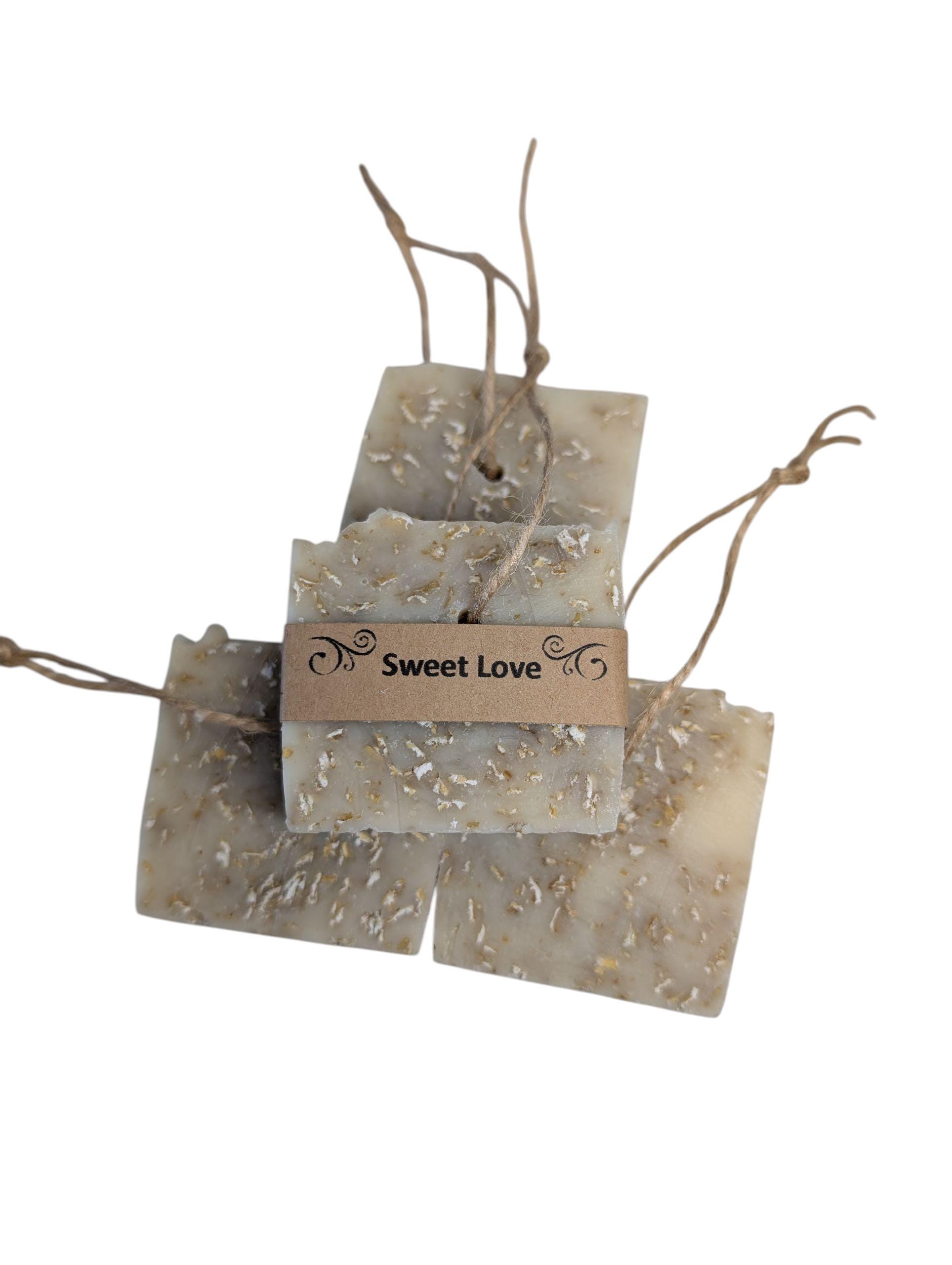 This listing is for our Small Size "Sweet Love" Almond Oatmeal Rope Soap Bar.